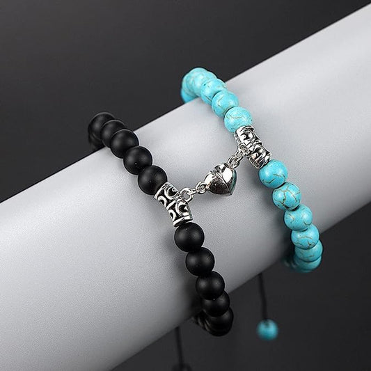 Fashion Frill Couple Blue-Black Natural Stone Onyx Stretchable Magnetic Bracelet
