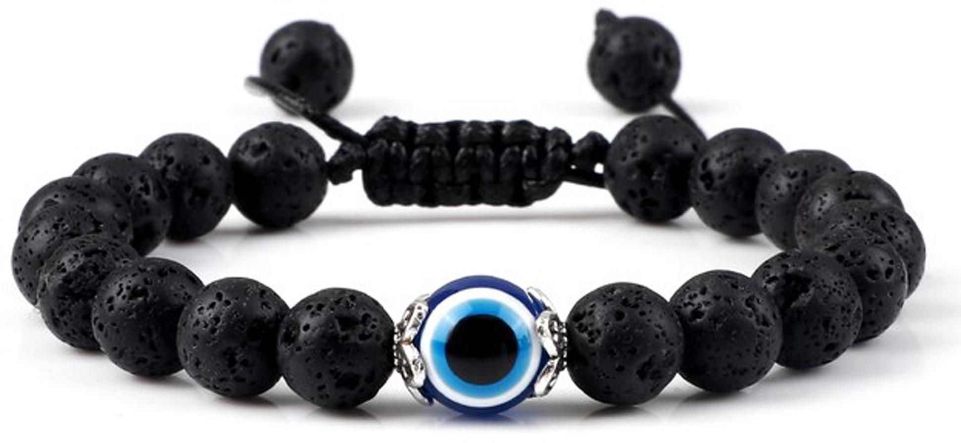 Fashion Frill Unisex Lava Stone Beads Evil Eye Black Bracelet