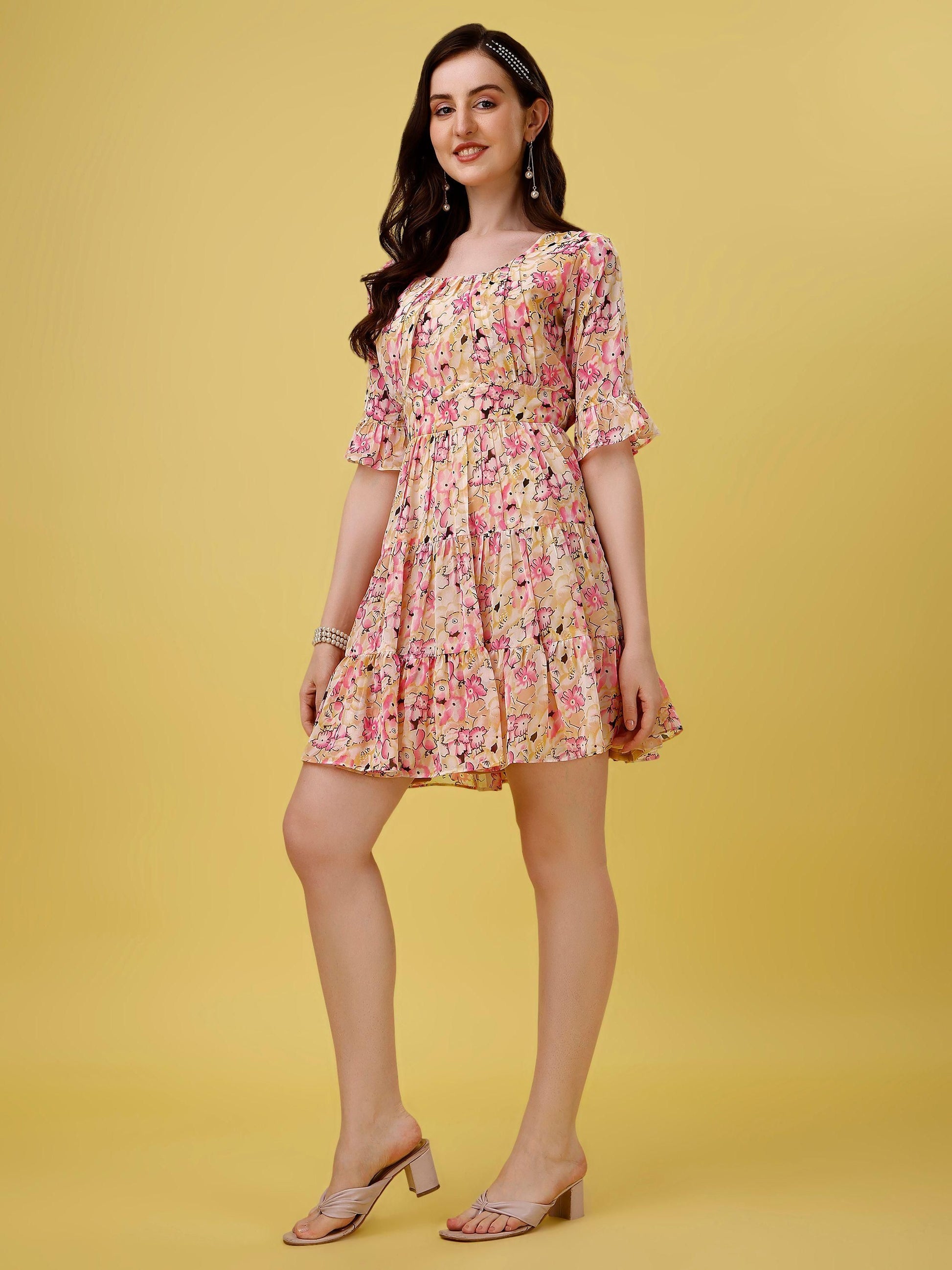 Product Name: Plus Size Women's Georgette Printed A-Line Short Dress